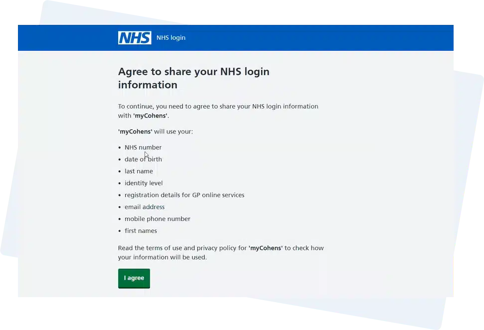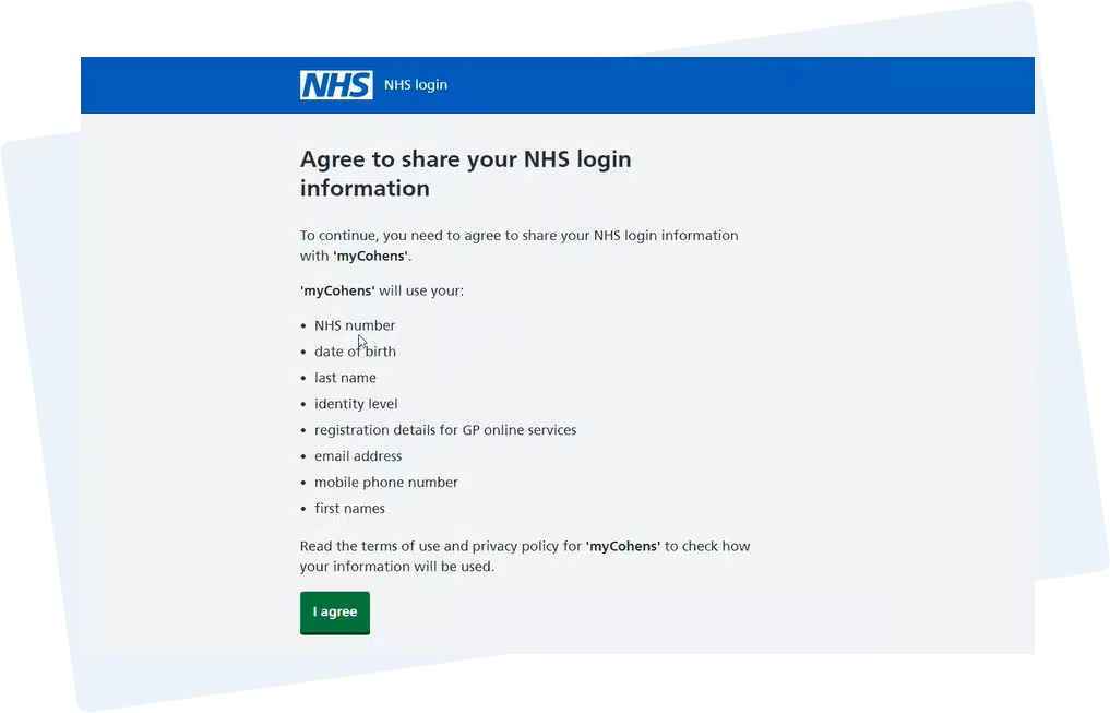 Once you’ve verified your identity, you’ll need to then agree to share your information with us so we can link with your NHS record.