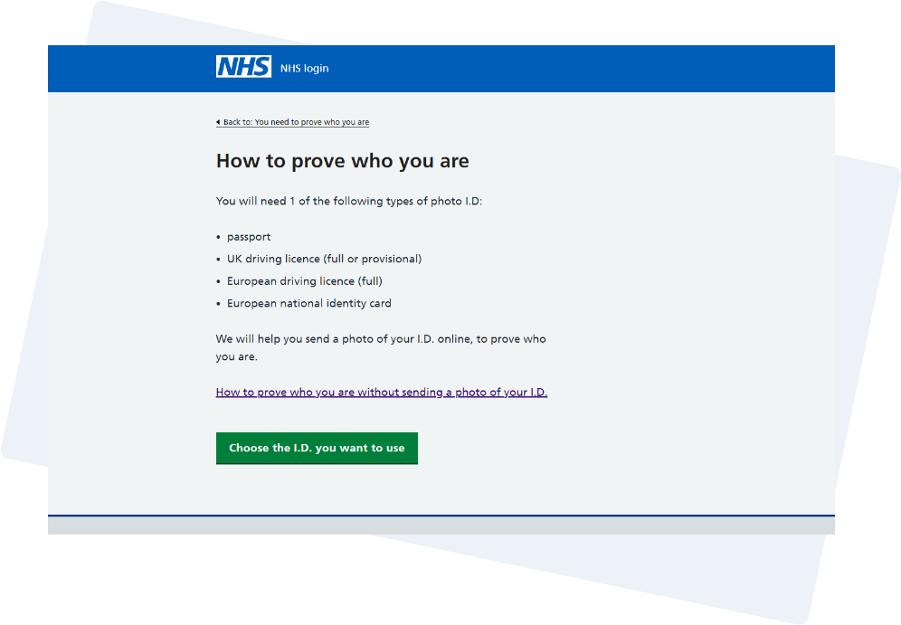 Before you can link with your NHS record you’ll first need to confirm your identity via NHS login.